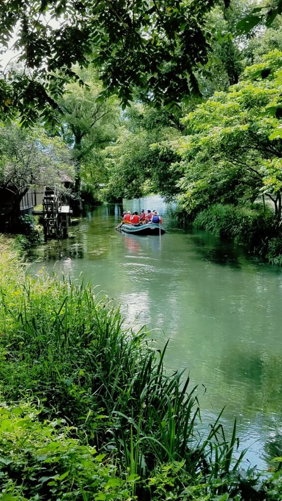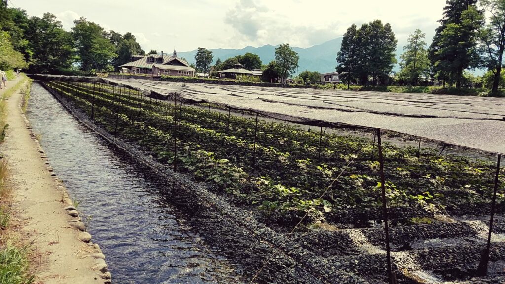 There are restaurants and souvenir shops in the park. Wasabi can only grow where the river water is clean.