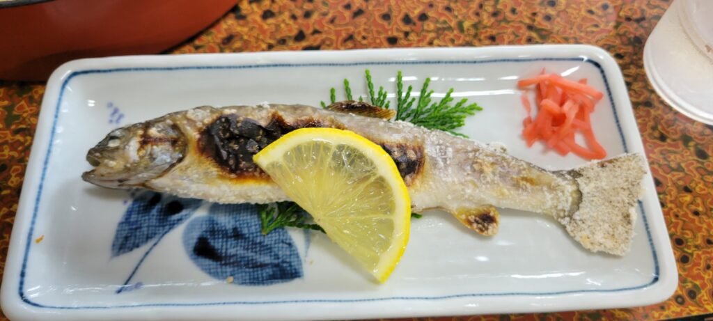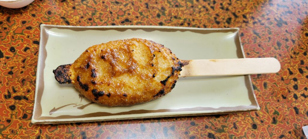 Miso-flavored rice cake and river fish. It’s simple and delicious.