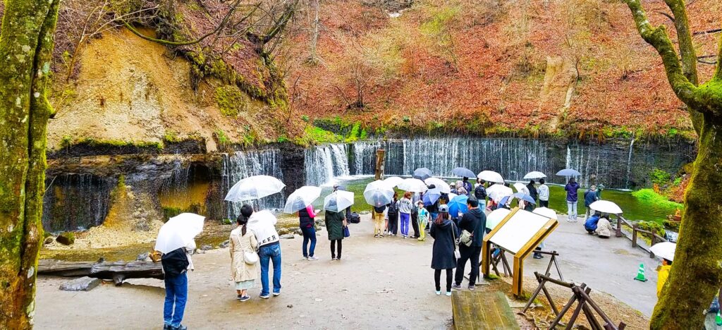 This is located in Karuizawa.The water from the Mt.Fuji springs up in the same way,and you can see waterfalls.