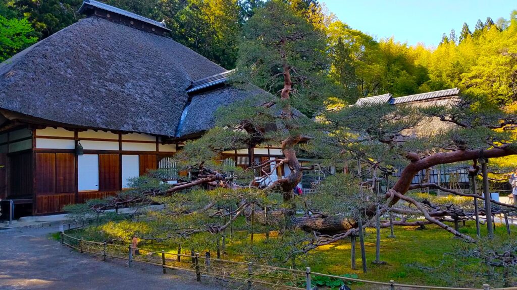This is a thatched roof temple built in 830.There is a 350 year old pine tree next to the temple.